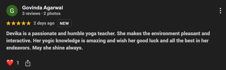 She is great yoga teacher, and a compassionate listener. Her depth in Yoga is matched only by her humility and care. What I value most is her ability to offer insight without overwhelm, and her integrity to admit when something is beyond her scope - yet, if you reach out to her, she never turns you away.